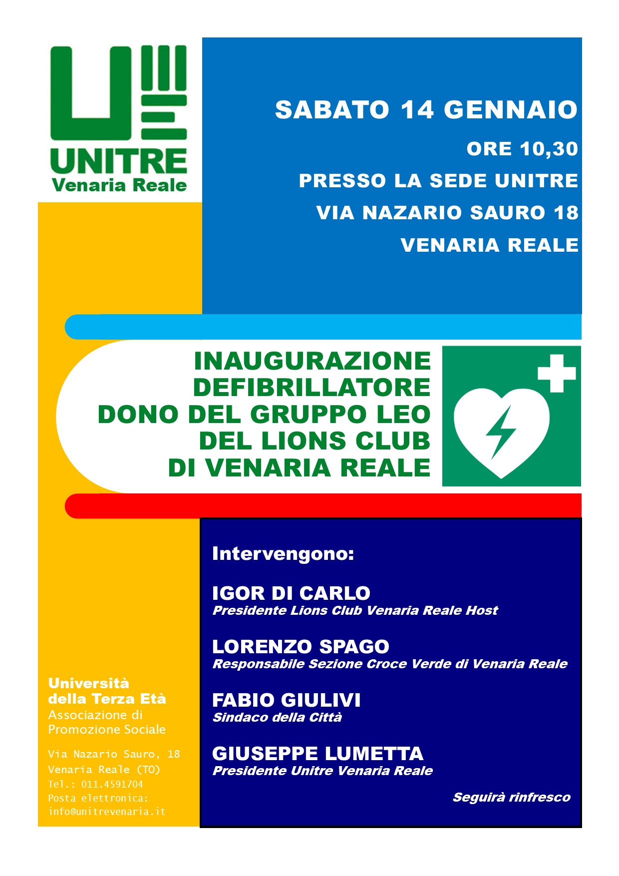 Inaugurazione defibrillatore donato dal Lions Club di Venaria Reale